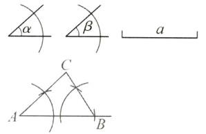 7. (新教材P41 T2)如图,用直尺和圆规作一个三角形,使这个三角形的两角分别等于$∠α$,$∠β$,这两角的夹边等于线段a.