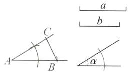 6. 例 (新教材P40例5)如图,已知线段a,b和$∠α$,求作$\triangle ABC$,使$AB = a$,$AC = b$,$∠A = ∠α$.