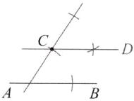 4. 例 (新教材P40例4)如图,已知直线AB及直线AB外一点C.利用直尺和圆规过点C作直线AB的平行线CD.
