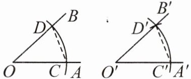 13. (1)如图是尺规作一个角等于已知角的作图痕迹.下列说法正确的是____;(填序号)