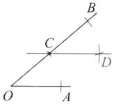 9. (新教材P44 T9)如图,点C在$∠AOB$的边OB上,利用直尺和圆规过点C作射线OA的平行线CD.