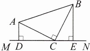 4. (新教材P60 T11改编)如图,$∠DCE= 90^{\circ }$,$CD= CE$,$AD⊥AC$,$BE⊥AC$,垂足分别为A,B. 求证: