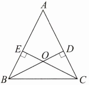 9. 如图,锐角△ABC的两条高BD,CE相交于点O,且OB= OC.