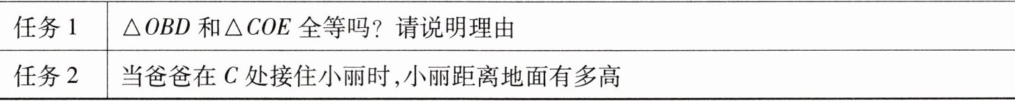 如图2,小丽从秋千的起始位置A处,两脚在地面上用力一蹬,妈妈在距地面1m高的B处接住她后用力一推,爸爸在C处接住她.已知妈妈与爸爸到OA的水平距离BD,CE分别为1.4m和1.8m,$∠BOC= 90^{\circ }$