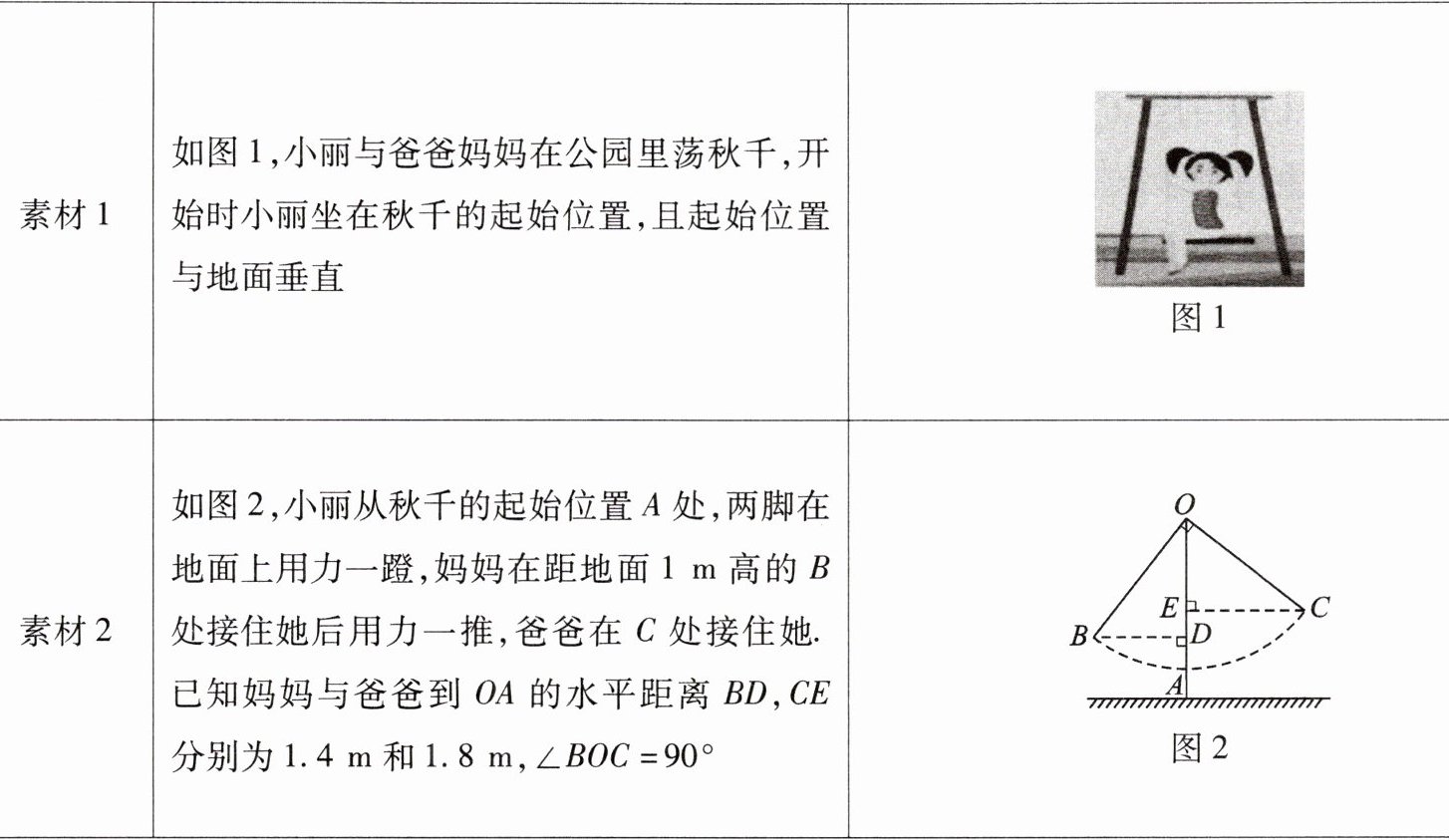 如图1,小丽与爸爸妈妈在公园里荡秋千,开始时小丽坐在秋千的起始位置,且起始位置与地面垂直