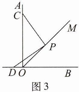 【拓展应用】(3)如图3,点C在射线OA上运动,且$∠AOB= 90^{\circ }$,当$∠CPD= 90^{\circ }$时,点D落在了射线OB的反向延长线上.若点P到OB的距离为3,$OD= 1$,求OC的长.(直接写出答案)