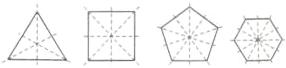 12. 画图:试画出下列正多边形的所有对称轴,并完成表格。