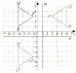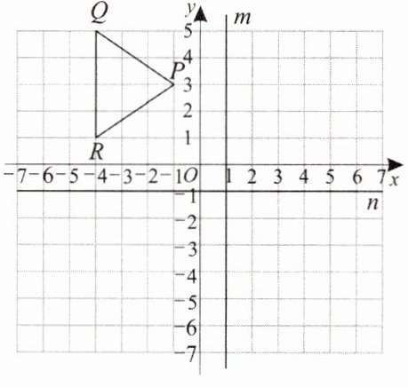 14. (新教材P77 T8)如图,分别作出$\triangle PQR$关于直线m(直线m上各点的横坐标都为1)和直线n(直线n上各点的纵坐标都为$-1$)对称的图形.它们的对称点的坐标之间分别有什么关系?