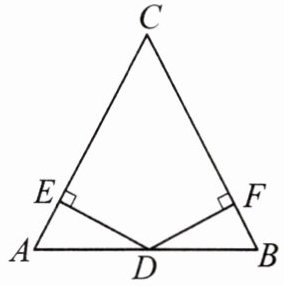 6. 例 如图,在$\triangle ABC$中,$D是AB$的中点,$DE⊥AC于点E$,$DF⊥BC于点F$,$AC= BC$.求证:$AE= BF$.