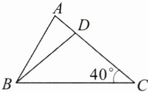 4. 例 如图,点$D在AC$上,$AB= BD= DC$,$∠C= 40^{\circ}$,求$∠A$,$∠ABD$的度数.