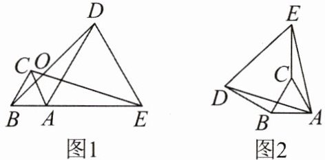 (1)如图1,点$B$,$A$,$E$在同一直线上,设$CE$,$BD交于点O$.