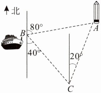 ∴AC=BC=40×0.5=20(海里).答:货轮到达C处时与灯塔A的距离是20海里.