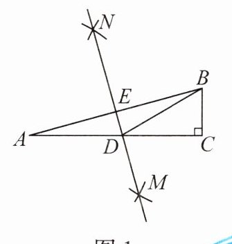 11. (1)(2024·阳江一模)如图 1,在 $ \text{Rt} \triangle ABC $ 中,$ \angle C = 90^{\circ} $,分别以点 $ A $,$ B $ 为圆心,大于 $ \frac{1}{2}AB $ 的长为半径作弧,两弧相交于点 $ M $,$ N $,连接 $ MN $ 分别与 $ AC $,$ AB $ 相交于点 $ D $,$ E $,连接 $ BD $. 若 $ \angle A = 15^{\circ} $,$ BD = 2 $,则 $ \triangle ADB $ 的面积为 ______.