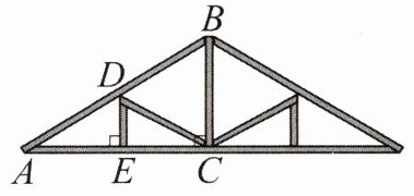 9. (新教材 P83 例 5 改编)如图是屋架设计图的一部分,点 $ D $ 是斜梁 $ AB $ 的中点,立柱 $ BC $,$ DE $ 垂直于横梁 $ AC $,$ AB = 7.4 \text{ m} $,$ \angle A = 30^{\circ} $,则立柱 $ BC = $ ______, $ DE = $ ______.