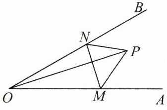 10. 如图,P是∠AOB内任意一点,OP= 8 cm,M和N分别是射线OA和射线OB上的动点,△PMN周长的最小值是8 cm,求∠AOB的度数.