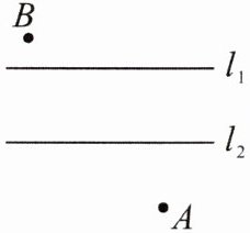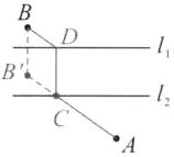 解:如图,作BB'⊥l₁,且BB'等于河的宽度,连接A'B'交l₂于点C,作CD⊥l₁交l₁于点D.则BD+CD+AC=BB'+A'B'最短.(把B平移到B'位置,把问题转化为B'与A位于直线l₂的异侧问题)