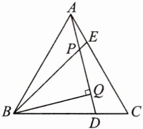 13. 如图,在$△ABC$中,$AB= BC= AC$,$AE= CD$,$AD与BE相交于点P$,$BQ⊥AD于点Q$.求证:(1)$△ADC≌△BEA$;(2)$BP= 2PQ$.