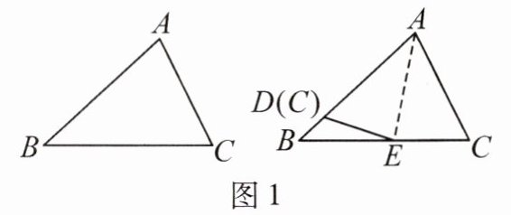 如图 1,在$\triangle ABC$中,如果$AB>AC$,那么我们可以将$\triangle ABC$折叠,使边 AC 落在 AB 上,点 C 落在 AB 上的 D 点,折痕交 BC 于点 E,则$∠C= ∠ADE$.