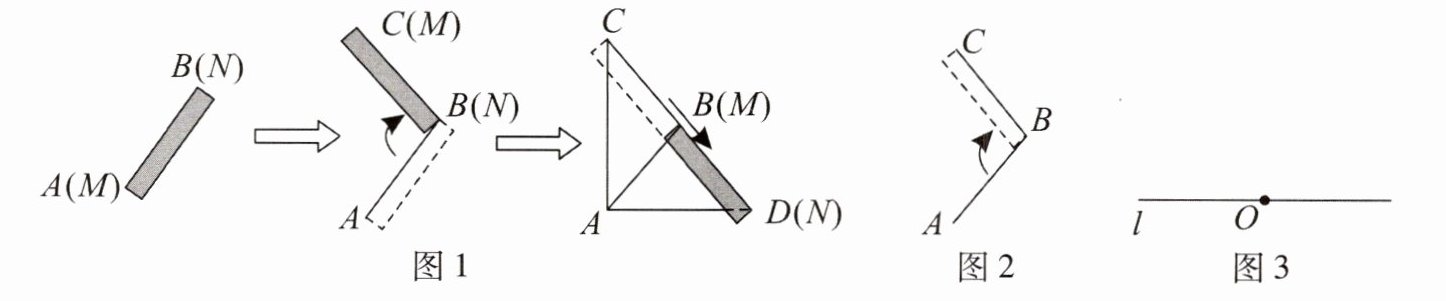 ①木条的两端分别记为点M,N,先将木条的端点M与点A重合,任意摆放木条后,另一个端点N的位置记为点B,连接AB;