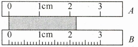 例2 如图所示,用A、B两刻度尺测同一木块的边长。刻度尺精确度(分度值小)高的是