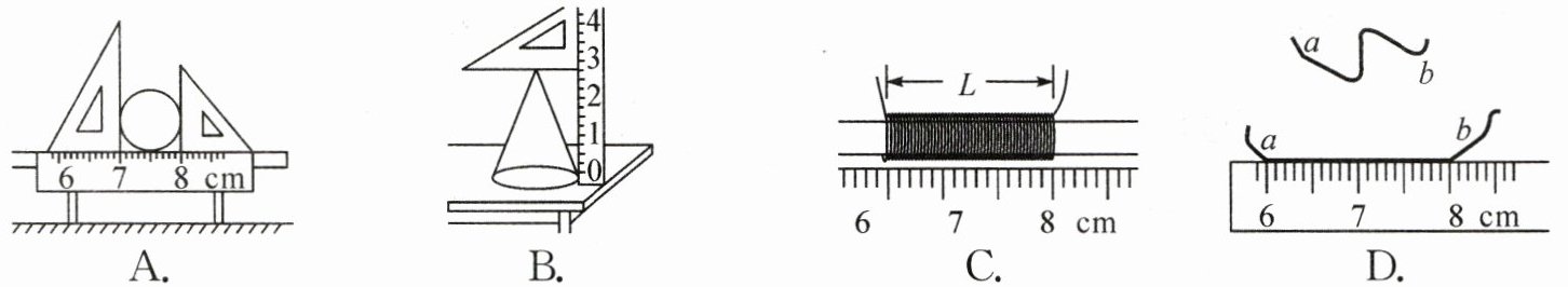 4. 如图所示,是长度测量中常用的几种特殊测量,其中测量过程有误的是(