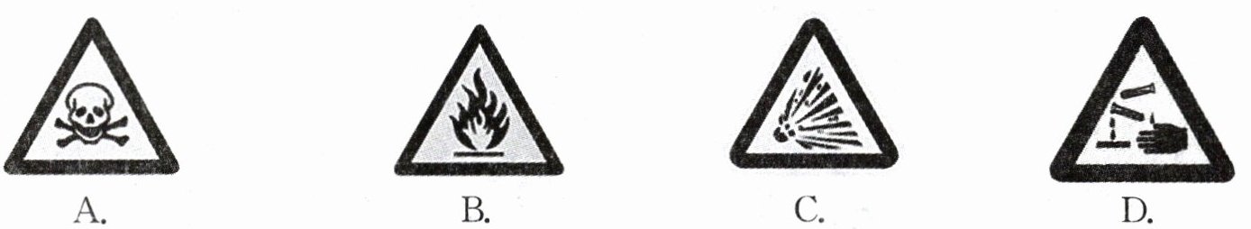 例2 以下是一些常用的危险品图标,装有腐蚀性药物的瓶子上应贴的图标是(