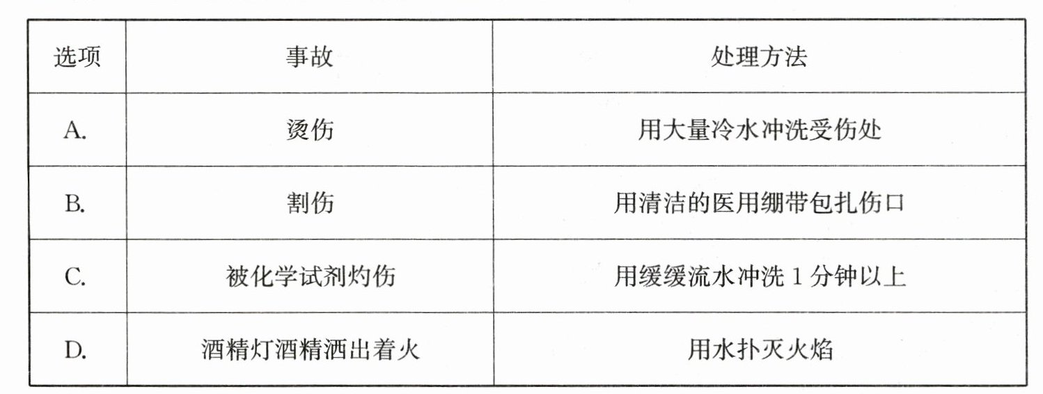 5. 实验室里做实验常常会发生意外事故,学会对意外事故的处理也是学习科学必备的一课,以下处理方法不恰当的是(