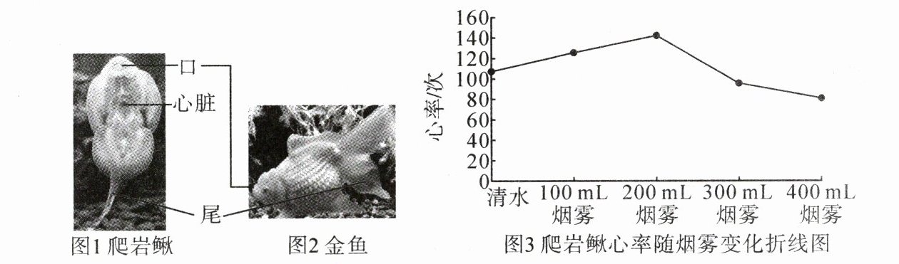 (1)爬岩鳅腹部皮肤透明,便于记录心跳数;心率稳定,烟雾变化对心率的影响具可比较性