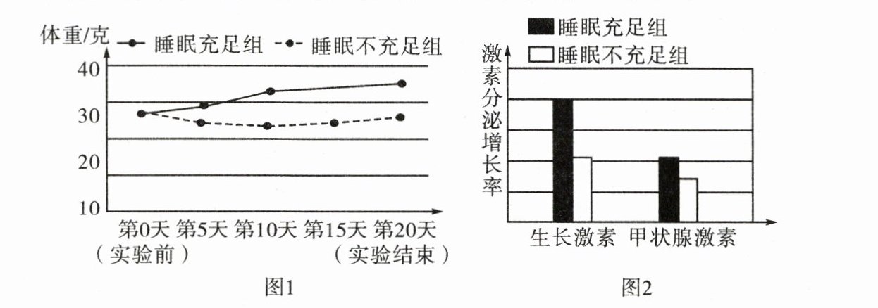 ④每隔五天测算幼鼠的体重与激素分泌增长率,并绘制图1、图2。