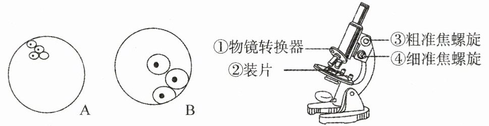 5. 如图所示是小温在显微镜下观察到的细胞图像,要使视野A变成视野B,无需调节的结构是(