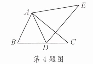 4. 如图,$\triangle ABC\cong \triangle ADE$,点$D$在$BC$边上,若$\angle EAC = 50^{\circ}$,则$\angle B$的度数为 ……………………………………………………………………… (