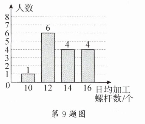 9. 某工厂第一车间有15名工人,每人日均加工螺杆数统计如图.则该车间工人日均加工螺杆数的中位数是