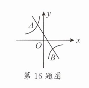16. 在平面直角坐标系中,一次函数$y=-\frac {3}{2}x+1$的图象与反比例函数$y=\frac {k}{x}(k≠0)$图象交于$A,B$两点,点$A$坐标为$(-2,m)$.