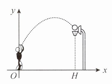 (2)若篮筐中心和该运动员的水平距离 $ OH $ 是4米,且篮筐中心离地面的高度为3.05米,请问该运动员本次投篮是否直接命中篮筐中心?请说明理由.