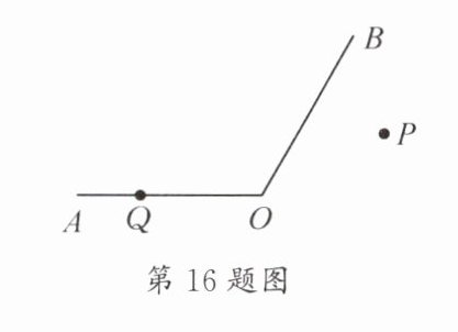 16. 如图,点P在$∠AOB$外,点Q在边OA上,按要求画图,写出作图结论,并填空.