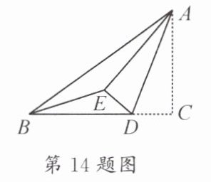 14. 如图,在$△ABC$中,$∠C=90^{\circ },AC=6,BC=8$,D为边BC上一动点,将$△ACD$沿直线AD对折,其中点C的对应点为点E,连结AE,当$△BDE$为直角三角形时,线段BD的长为______.