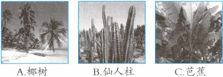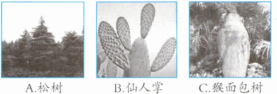 3. 热带草原上的降水比较集中,一段时间干旱,另一段时间大量降水,一年中干季、湿季分明。下列植物中,适合在这种环境生长的是(