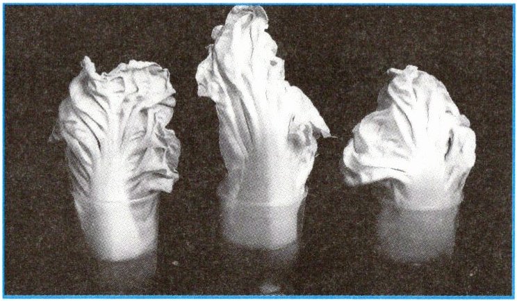 3. 将大白菜菜叶分别放入三个杯中。