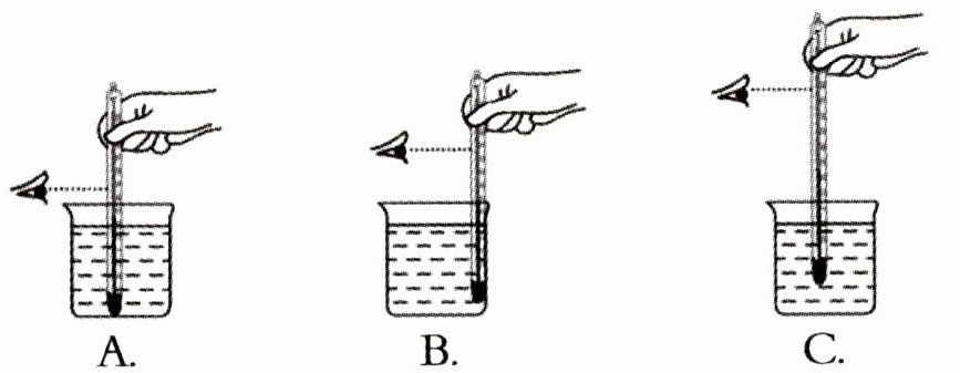 )。A. 用拇指、食指和中指捏住温度计上端