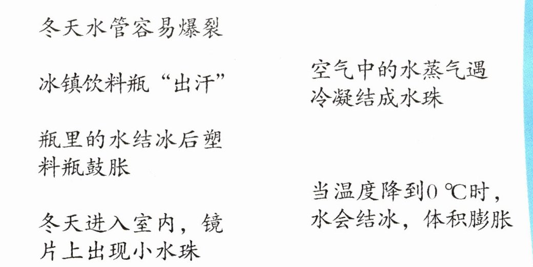 2. 在“研究水结冰前后温度和体积的变化”的实验中,在碎冰中加盐的目的是为了保持水的温度。 (