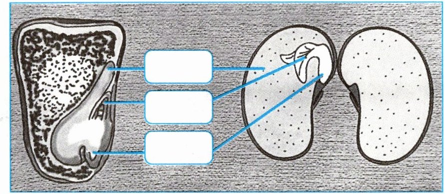 1. 下图是种子的内部构造图,请在方框中填写对应的结构名称。