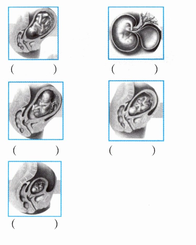 请按照胎儿在妈妈子宫里不同时期的样子,给下列各图排序。