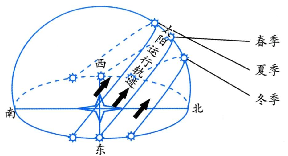 下图是不同季节正午的太阳高度,请把太阳高度角与对应季节连起来。