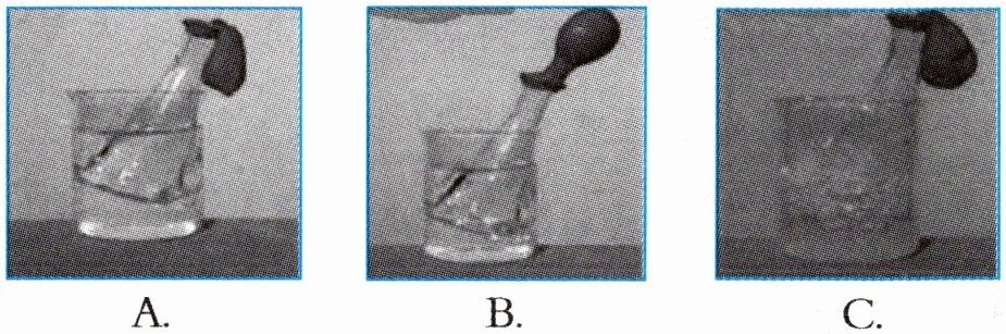 5. 用气球嘴套住烧瓶瓶口,研究气体受热和遇冷时体积的变化时,放在热水中的是(