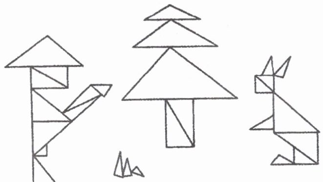 下面的图形展示的是一个寓言故事,你猜到了吗? 能讲一讲吗? 请你也拼一个美丽的故事吧!