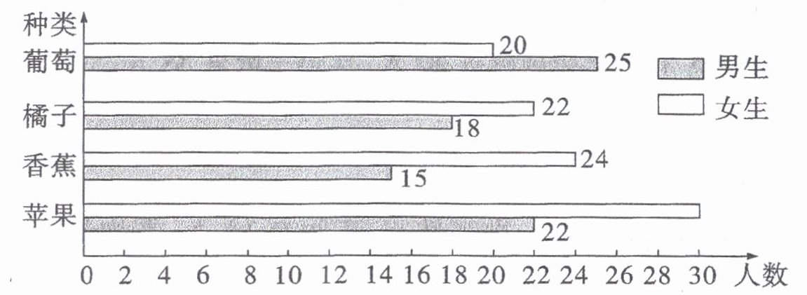 三、下面是四年级同学最喜欢的水果情况统计表(每人选一种)。