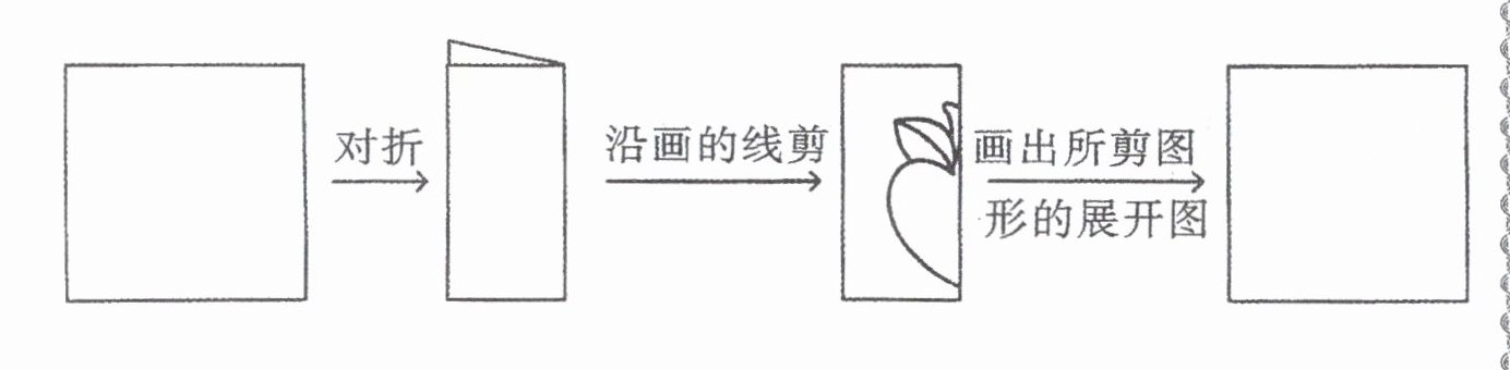 【解析】:根据轴对称图形的性质,对折后剪的图形展开后是关于折痕对称的。已知剪的是一半苹果图形,那么展开后应该是完整的苹果图形(左右对称)。