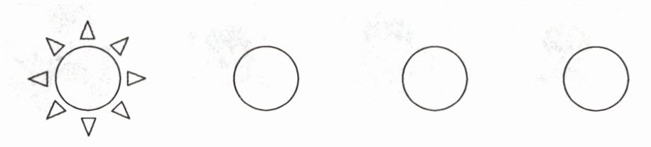 三、你能在圆上加几笔,使它变成不同的图画吗?请你画出来,并写出是什么。