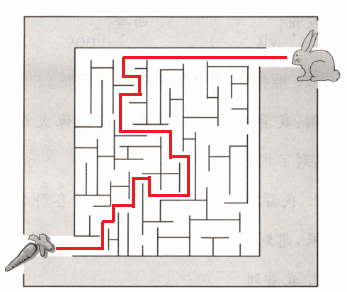 五、小白兔要到地里去拔萝卜,应该怎么走呢?