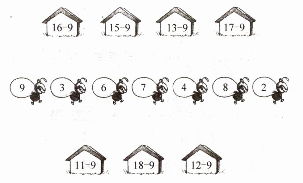 【答案】:$16 - 9$连$7$;$15 - 9$连$6$;$13 - 9$连$4$;$17 - 9$连$8$;$11 - 9$连$2$;$18 - 9$连$9$;$12 - 9$连$3$。